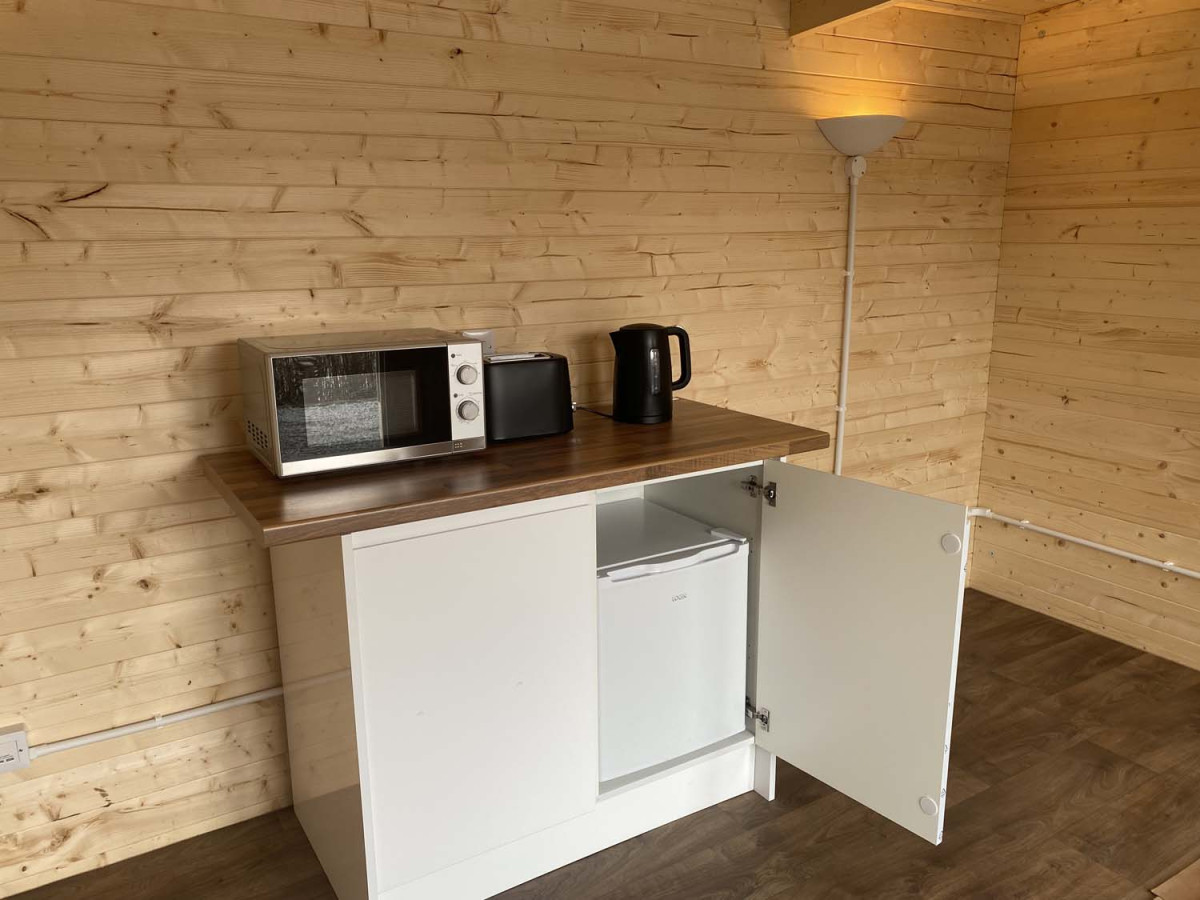 The Cabins are all insulated and benefit from heating, USB ports, Kettle, Toaster, microwave and fridge. With ample space, all cabins will accommodate 2 Bedchairs and all luggage/bags.